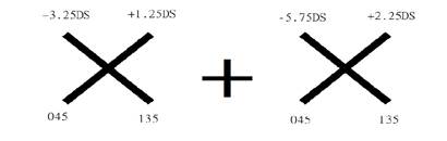 C17 在檢測患者散光度數時常使用傑克森交叉圓柱鏡(Jackson crossed-cylinder test,JCC)・下列何者為JCC鏡片之處方?